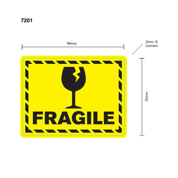 Dispenser Labels 75mm x 99mm Yellow (1000/roll) - FRAGILE